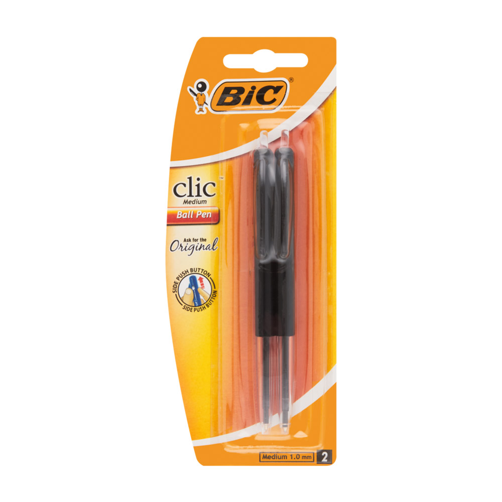 BIC CLIC PEN BLACK 2PC IN BLISTER PACK