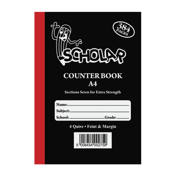 SCHOLAR HARDCOVER COUNTER BOOK A4 4 QUIRE F/M 384 PAGES